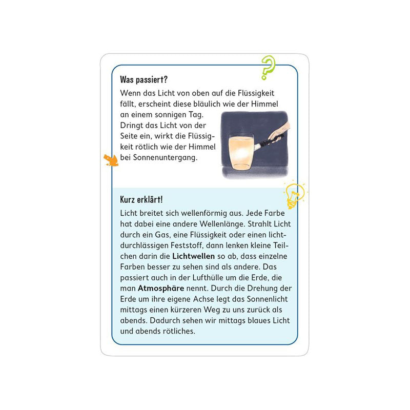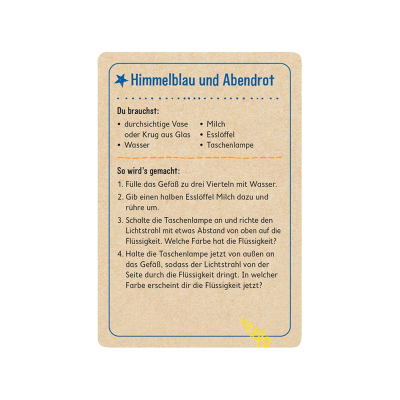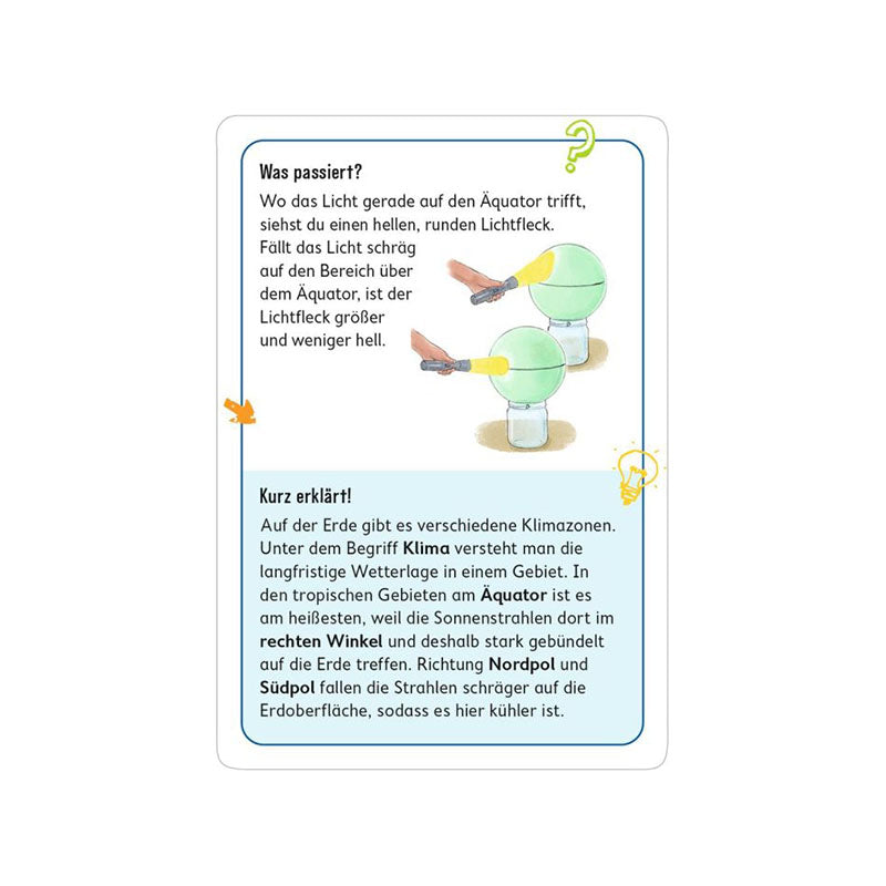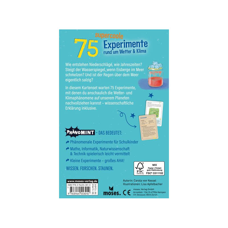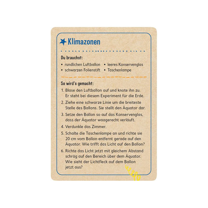 The PhänoMINT card set 75 super cool experiments about weather and climate contains 75 exciting experiments that can be used to clearly understand the weather and climate phenomena on our planet. Inquisitive children aged 8 and over can learn to understand scientific phenomena in a playful way – and do really cool experiments at the same time! The ideal gift for children interested in science who are enthusiastic about weather phenomena!