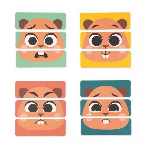 - Last but not least is the emotion-themed wooden puzzle: our beaver friend returns and prompts children to expand their vocabulary and better identify emotions. 4 emotions are represented (joy. sadness. fear and anger) and have a distinctive coloured background which serves as a guide for your little one.