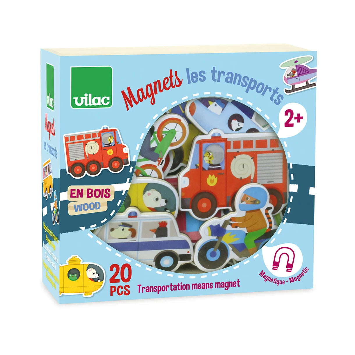 - Contents: 20 x wooden vehicles magnets